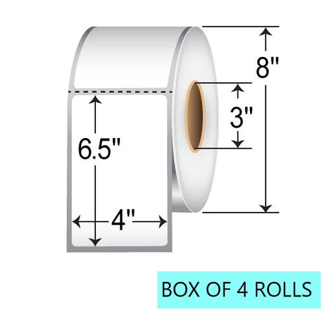 4" X 6.5" Direct Thermal Labels W/ Perf, 900 Per Roll, 8" OD, 3" Core
